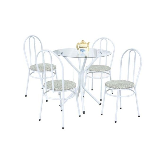 Conjunto de Mesa e 4 Cadeiras Lírio Branco/Bege - Marcheli