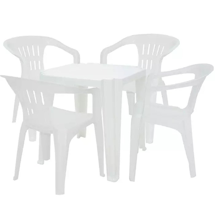Conjunto de Mesa e Cadeiras Tramontina Plástico. O Conjunto de Mesa e Cadeiras da Tramontina é perfeita para proporcionar beleza e praticidade para seu ambiente. Você pode utilizar ele tanto em ambiente interno com externo. Confira mais detalhes: Estrutura com qualidade O Conjunto é todo em polipropileno, material de alta qualidade e resistência. A Cadeira Atalaia, possui braços de apoio e suporta até 154kg. Tanto a cadeira, quanto a mesa, podem ser empilhadas, o que facilita na hora de guardar, pois em pouco espaço você consegue guardar vários Conjuntos. Dicas de limpeza Para manter seu Conjunto de cadeira e mesa conservado, utilize água e sabão neutro ou a pasta de limpeza Tramontina. Sobre a marca: qualidade Tramontina A Tramontina é referência em qualidade, inovação e design. É uma empresa com mais de 18 mil itens produzidos, com objetivos e utilidades distintas, porém com os mesmos valores e crenças. Está presente em mais de 120 países e contam com mais de 8,5 mil funcionários que atuam em fábricas e demais unidades operacionais e comerciais. Foi fundada em 1911, por Valentim Tramontina na cidade de Carlos Barbosa no estado do Rio Grande do Sul e desde então a empresa tem como missão fazer bem feito para inspirar o dia a dia das pessoas com experiências que tenham significado e geram valores e satisfação para seus clientes, funcionários e acionistas Detalhes sobre a compra: Fique de olho: siga sempre as orientações do fabricante e utilize seu produto de acordo com o manual. A empresa não se responsabiliza pelo mau uso do produto, o que pode causar perda da garantia.#8239; Não nos encarregamos, no ato da entrega, por montagens e desmontagens, subir escadas/elevadores ou transporte por guincho para apartamentos. Eventuais despesas são de responsabilidade do cliente. O valor divulgado é unitário e a imagem é meramente ilustrativa. Precisou trocar ou devolver? O prazo é de 7 dias a partir do recebimento do produto - Lei nº 8.078 Sempre confira no ato da entrega. Características: Marca: Tramontina Modelo: Mesa: Tambaú e Cadeira: Atalaia Tipo: Conjunto de mesa Quantidade de lugares: 4 Formato: Mesa: quadrado Material da estrutura: Mesa: Polipropileno | Cadeira: Polipropileno Material do tampo: Polipropileno Peso suportado da cadeira: 154kg Encosto: Sim Estofado: Não Dimensões da mesa: Altura: 72cm Largura: 69,5cm Profundidade: 69,5cm Peso: 3,7kg Dimensões da cadeira: Altura: 72,5cm Largura: 55,5cm Profundidade: 57cm Peso: 2,4kg Garantia do fornecedor: 3 meses ATENÇÃO: Não nos responsabilizamos, no ato da entrega, por desmontagens, subir escadas/elevadores ou transporte por guincho para apartamentos. Eventuais despesas são de responsabilidade do cliente. Confira as dimensões deste produto e certifique-se de que passará normalmente por supostos elevadores, portas, escadas e/ou corredores de sua moradia. Recomendamos que os produtos sejam instalados por profissionais especializados e não nos responsabilizamos pelo mau uso ou instalação indevida, causando a perda da garantia. Todas as informações divulgadas são de responsabilidade do fabricante/fornecedor. Valor unitário. Imagem meramente ilustrativa Prazo de troca e devolução: 7 dias a partir do recebimento do produto - Lei nº 8.078 - Sempre confira no ato da entrega.