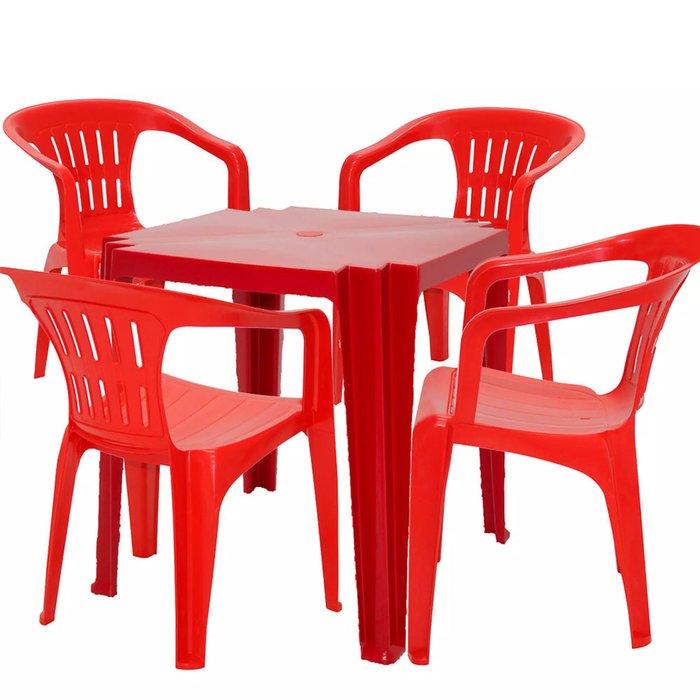 Conjunto de Mesa e Cadeiras Tramontina Plástico Vermelho