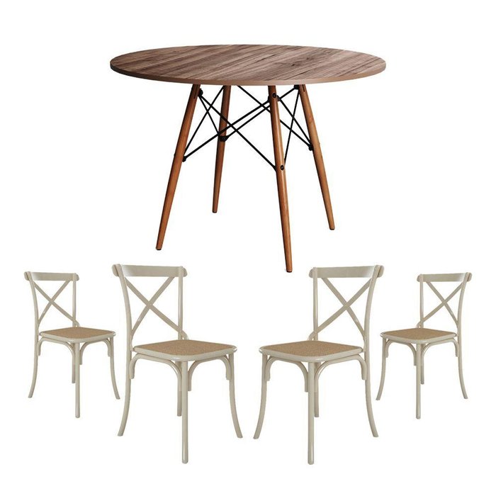 Conjunto De Mesa Eiffel Redondo Tampo De Madeira 110cm Amêndoa Com 4 Cadeiras Katrina Off White Asse