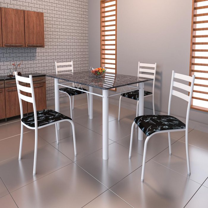 Conjunto De Mesa Itália 1,20m Tampo Mdp Branco / Preto Flor