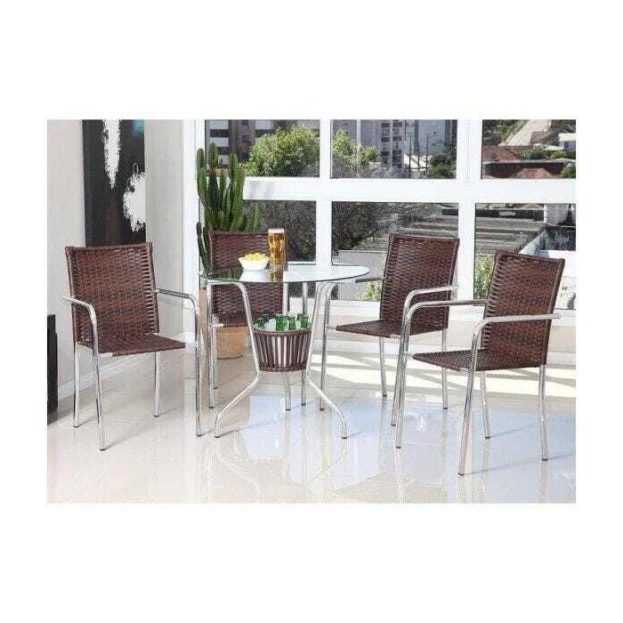 Conjunto de Mesa Jardim Alumínio Fibra 4 Cadeiras Área Externa Castanho Castanho