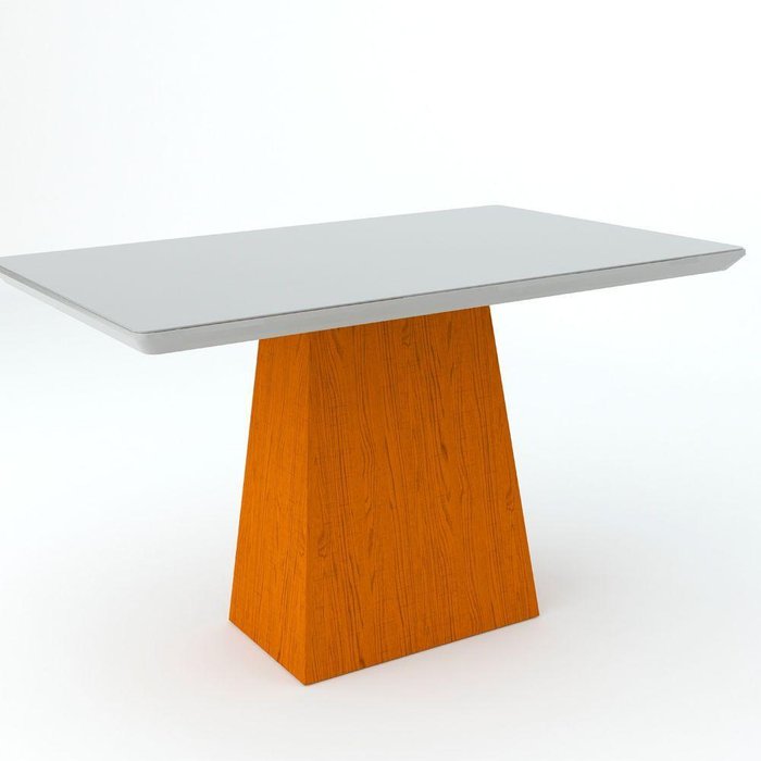 Mesa De Jantar Para 4 Ou 6 Lugares Tampo De Madeira Com Vidro Bárbara 1,35m Ype Off White New Ceval