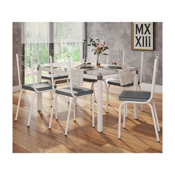 Conjunto de Mesa Malva Vidro Branco 140cm com 6 Cadeiras 119 Branco Platina Artefamol
