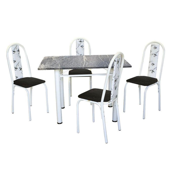 Conjunto de Mesa Michelly com 04 Cadeiras 110x75cm Moura Branco-preto-preto Floral