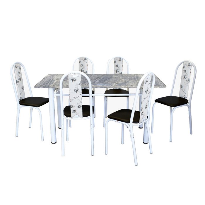 Conjunto de Mesa Michelly com 06 Cadeiras 150x75cm Moura Branco/Preto/Branco Floral