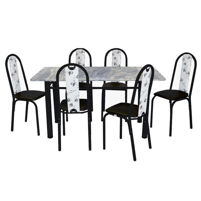 Conjunto de Mesa Michelly com 06 Cadeiras 150x75cm Moura Preto com Branco Floral