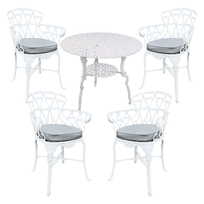 Transforme seu espaço com o Conjunto de Mesa Viena 80cm e 4 Cadeiras, uma combinação perfeita de elegância, resistência e conforto. Com estrutura em alumínio fundido, esse conjunto une beleza clássica e alta durabilidade, sendo ideal para áreas externas e internas. As cadeiras acompanham almofadas de assento, proporcionando ainda mais conforto para seus momentos de lazer.