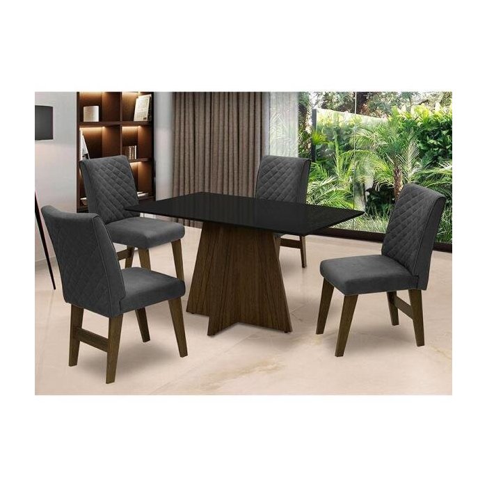 Conjunto de Mesa para Sala de Jantar com 4- Dobue - Castanho / Preto / Grafite Vlp Bordado