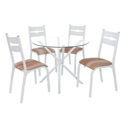 Conjunto de Mesa Redonda com 4 Cadeiras Luna Clássica Branco/Cappuccino