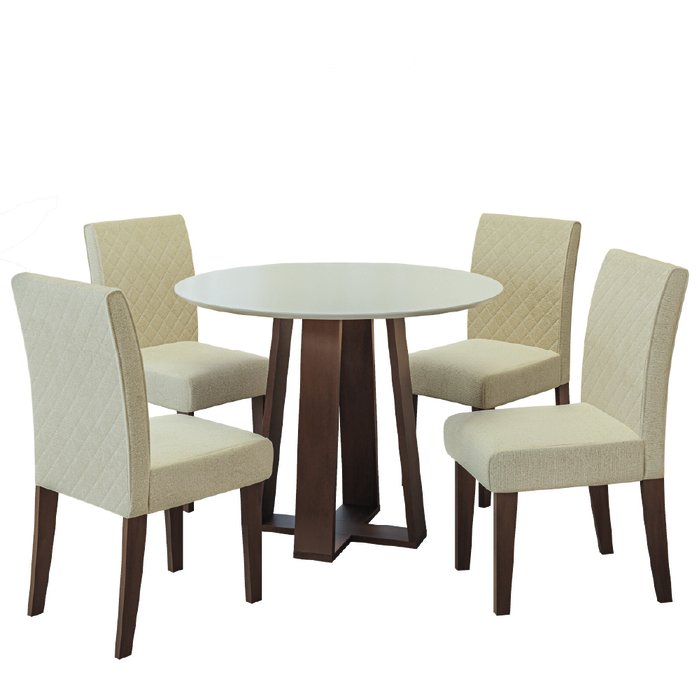 Conjunto de Mesa Sala de Jantar 4 Cadeiras Redonda 1,03m Athenas Cedro/areia Castanho / Areia