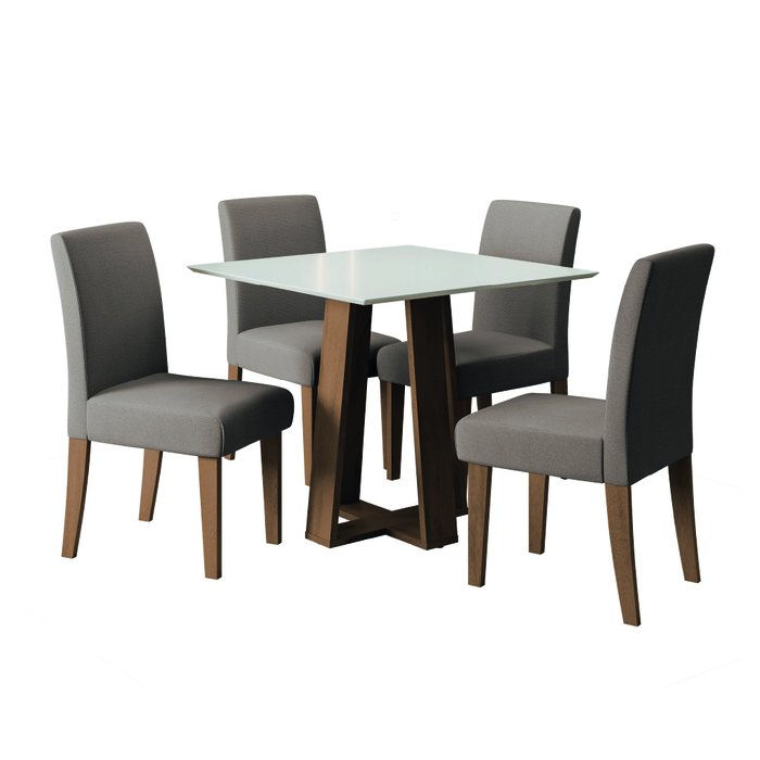 Conjunto de Mesa Sala de Jantar Athenas Quadrada 0,90m 4 Cadeiras Trieste Cedro/off White/mascavo