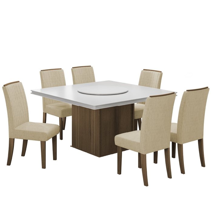 | MODELO: | Conjunto De Mesa Sala de Jantar Com Tampo Giratório Amesterdã 1,36m 6 Cadeiras Grécia Dobuê |