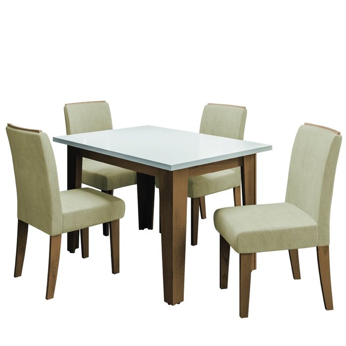 Conjunto de Mesa Sala de Jantar Miami com 4 Cadeiras Nova York 1,20m Cedro / Off White / Areia Dobu