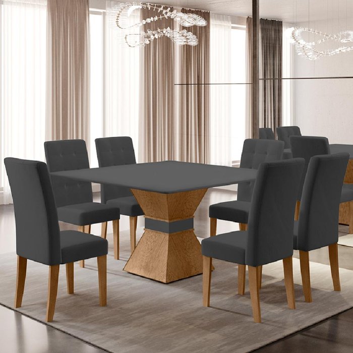 Conjunto de Mesa Sala de Jantar Mônaco com 6 Cadeiras Carvalho/Cinza Quadrada 1,36m Dobuê
