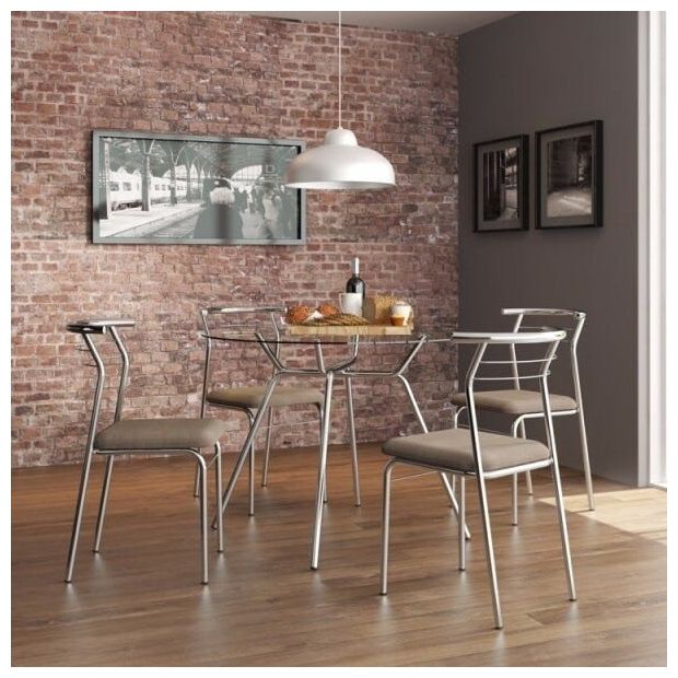 Ver imagem 1 de Conjunto de Mesa Tampo Vidro Redondo com 4 Cadeiras Luanda Espresso Móveis