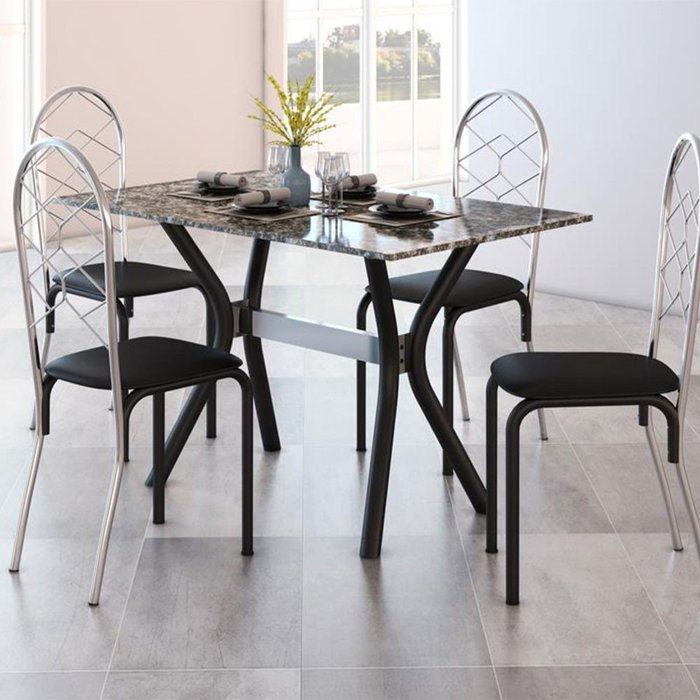 Conjunto de Mesa Viena 120x75cm com 4 Cadeiras Atenas Cromado e Tampo de Granito Tubform CROMO E PRETO