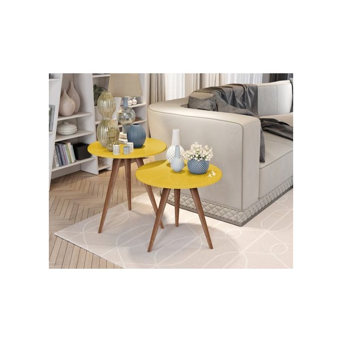 Conjunto de Mesas Apoio Lateral Casa Móveis:Amarela