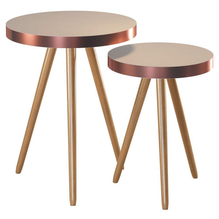 Que tal o Conjunto de Mesas Laterais Decorativas Sala de Estar Malaga Pés de Madeira?