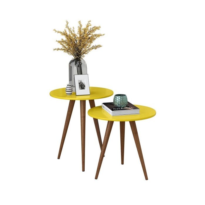CONJUNTO DE MESAS LATERAL E APOIO BIA AMARELO - HUMAGUI MOVEIS