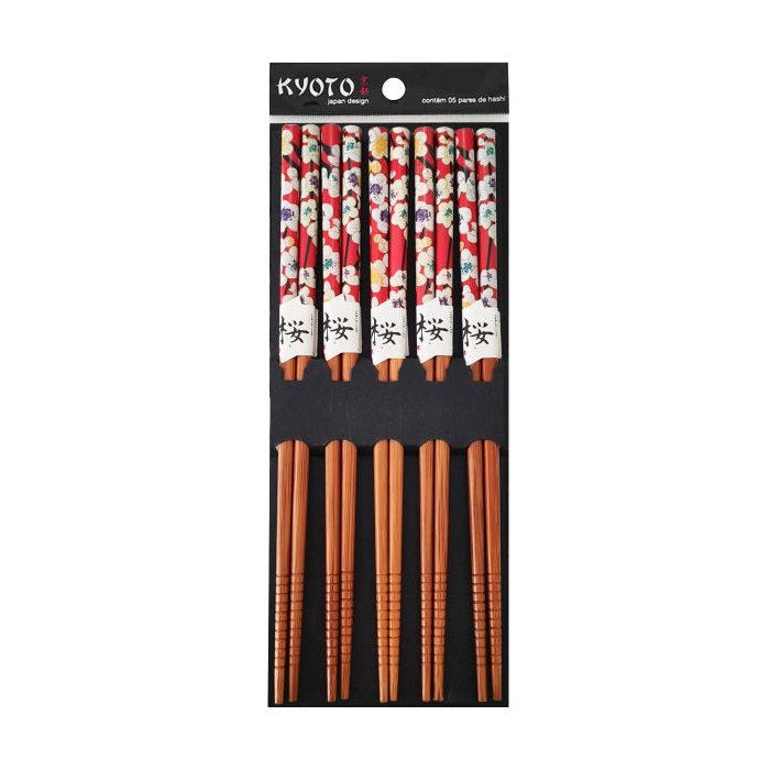 Conjunto De Palitos Japoneses Sushi Bambu Kyoto 5 Pares Hashi Floral Vermelho Yoi
