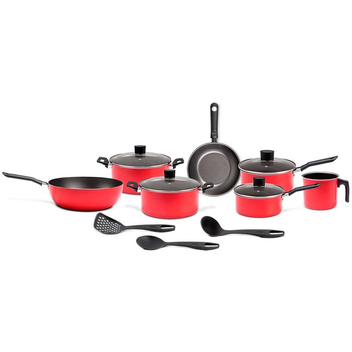 Conjunto de Panelas 10 Peças Brinox Onion em Alumínio com Revestimento Antiaderente Pro-Flon, Tampas Vermelho
