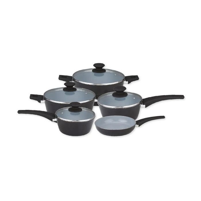 Conjunto de Panelas 5 Peças EcoLumi Master 4.5 – Revestimento Cerâmico Preto Preto