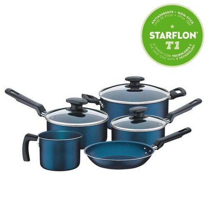 Conjunto de Panelas Antiaderente Bergamo 5 Peças Azul Turquesa - Tramontina