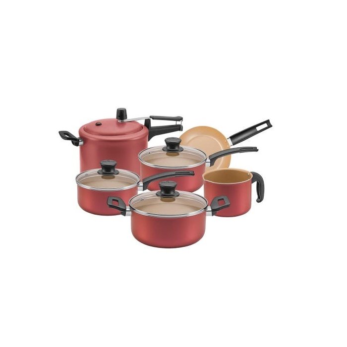 Conjunto de Panelas Antiaderente com Panela de Pressão Panelux Magnific 6Peças Cereja