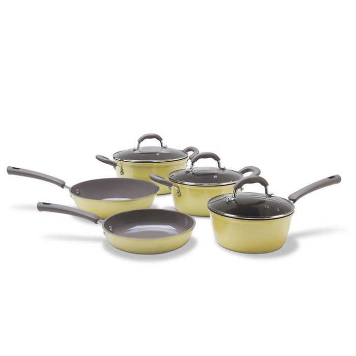 Toda cozinha bem equipada precisa de um conjunto de panelas completo, prático e que favoreça uma alimentação saudável, como o da linha Select! Com a nova geração de antiaderente cerâmico: a Pro Ceramic Premium, as panelas Select estão mais resistentes, livres de metais pesados e elementos químicos prejudiciais à saúde, exigem menos uso de óleo, não deixam os alimentos grudarem, facilitam na limpeza e consomem menos energia. Tudo para deixar a sua alimentação saudável e prática. Possuem cabos e alças de baquelite, rebitados com aço inox e revestidos com Soft-Touch, que não esquenta e tem um toque macio e confortável. As tampas em vidro temperado com saída para o vapor são ideais para quem quer acompanhar o preparo da comida sem prejudicar seu cozimento. O conjunto é composto por cinco peças: duas caçarolas com tampas ( Ø20x9cm e 2,3L e Ø24x11 cm e 4,3L), uma frigideira (Ø20x4,5 cm 1L), uma panela com tampa (Ø18x8 cm 1,7L) e uma Wok (Ø24x7 cm 2,3L). Nesta versão, a cor da pintura externa é pistache.