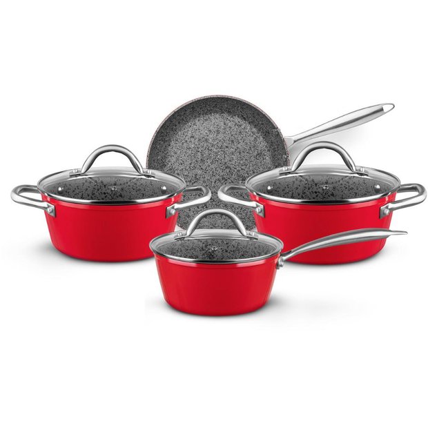 Jogo de Panelas MTA Granito 4 Peças, parece sonho, mas é realidade. Com este novo item da MTA você poderá usufruir de um revestimento cerâmico marmorizado de ótima qualidade, robusta espessura e a composição em alumínio que vão deixar o cozimento muito mais simples, prático e uniforme, pois irá distribuir igualmente o calor por toda a superfície. Para completar todas as funcionalidades, ainda conta com tampa de vidro temperado adicionadas às saídas de vapor que proporcionam um cozimento mais suculento, com circulação do vapor. Além disso, os cabos, pegadores e alças são produzidos inteiramente em aço inoxidável, possuindo rebites feitos de alumínio reforçado, a fim de melhor fixar e garantir a segurança durante o manuseio. Características: Marca: MTA Código do Fabricante: 8435 Linha: Granito Cor: Vermelho Material: Alumínio injetado Material da Alça/Pegador: Aço inox Antiaderente: Sim (revestimento cerâmico marmorizado) Espessura: 3,8mm Fogões Compatíveis: Gás, elétrico, vitrocerâmico e indução Conteúdo: Caçarola 20cm 2.5L, Caçarola 24cm 4.1L, Frigideira Alta 24cm 1.8L e Panela 18cm 1.9L Compatível com Lava-louças: Sim Material das Tampas: Vidro temperado Saída de Vapor: Sim