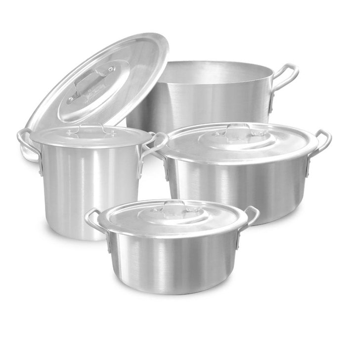 Conjunto de Panelas Cozinha Profissional Hotel 4 Peças com Tampa em Alumínio - Alumínio ABC
