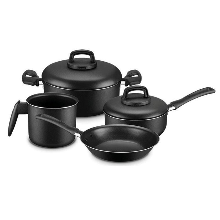 O conjunto é fabricado em alumínio resistente e durável com 1.2 mm de espessura, prolongando a vida útil das panelas.