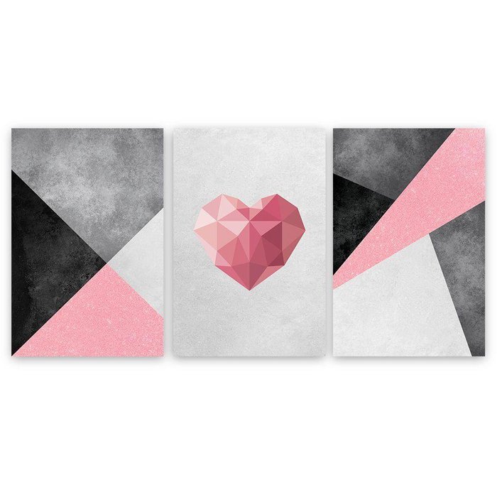 Conjunto De Placas Decorativas Trio Coração Poligonal