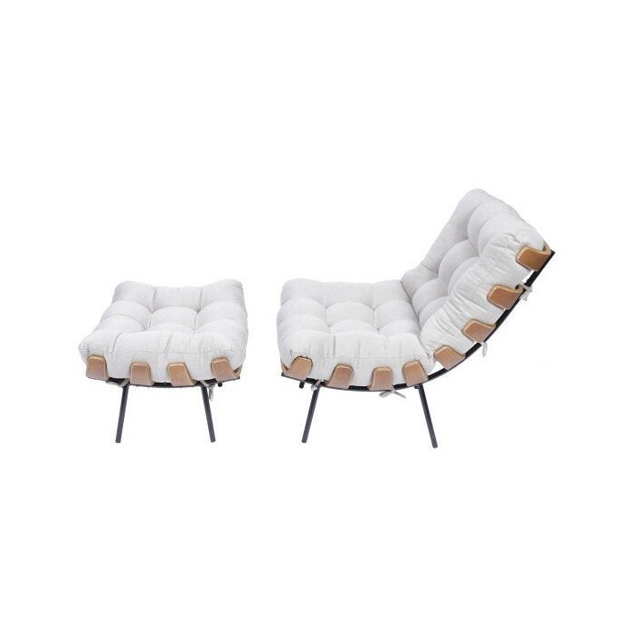 Conjunto de Poltrona com Puff Costela em Linho - Or Design - Bege