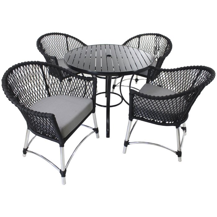 Conjunto de Poltronas e Mesa Chile em Corda Náutica Alumínio Rami