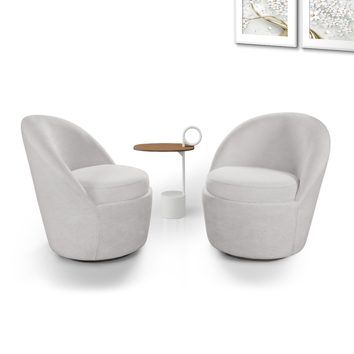Conjunto de Poltronas Eduarda Tecido Bouclé Cinza Claro Base Giratória