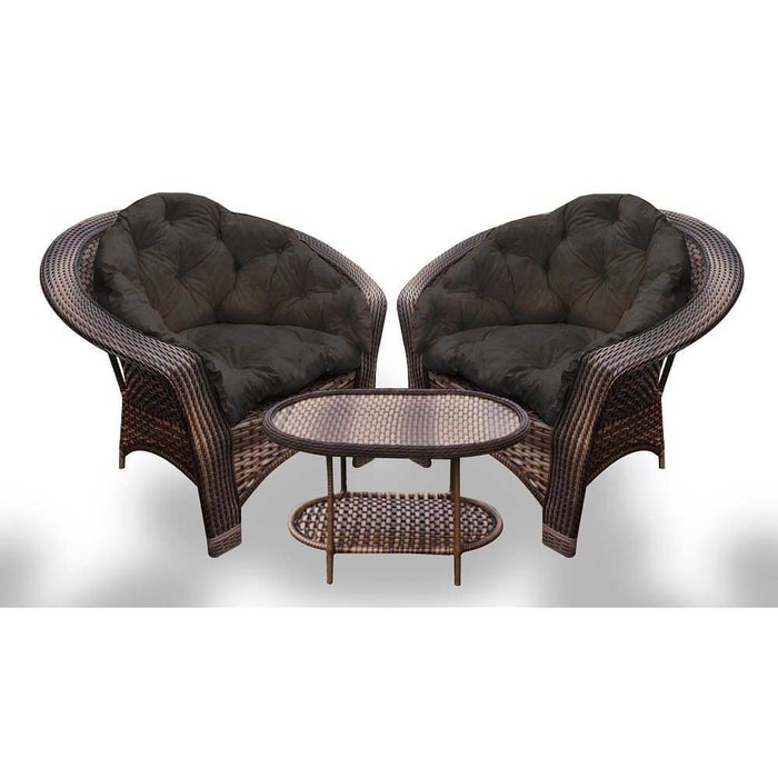 Conjunto de Poltronas Fibra Sintética 19 - 2 Poltronas + 1 Mesa Centro - Tecido Duna Marrom