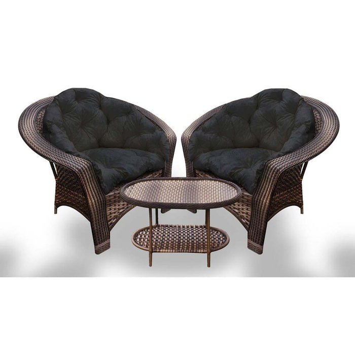 Conjunto de Poltronas Fibra Sintética 19 - 2 Poltronas + 1 Mesa Centro - Tecido Duna Preto