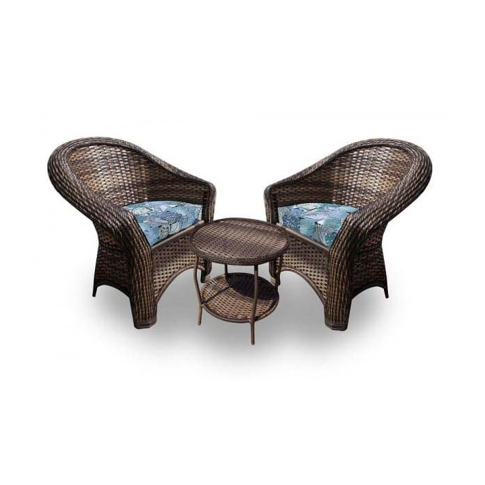 Conjunto de Poltronas Fibra Sintética Bali - 2 Poltronas + 1 Mesa Centro - Tecido Coquille Azul