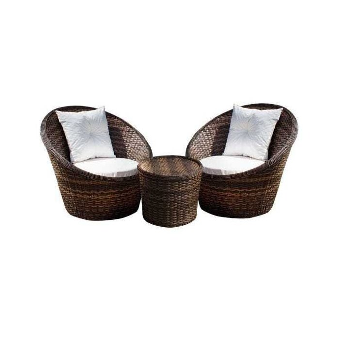 A estrutura de aço galvanizado envolto em fibra sintética garante a qualidade de nossos produtos. Nossas almofadas são revestidas com tecidos Acquablock, compostos por 72% algodão e 28% poliéster, com acabamento impermeável. Confira os tecidos disponíveis e todas as vantagens Acquablock aqui. Conjunto composto por: 2 poltronas - Altura do assento com almofada 43 cm Dimensões A83 x L98 x C90 cm 1 Mesa de centro redonda Dimensões A47 x D55 cm Por se tratar de confecção artesanal, as dimensões dos produtos podem sofrer variação. Cuidados na manutenção do seu móvel Material de fibra sintética é ideal para utilização em ambientes externos, necessitando apenas de pequenos cuidados para que seu móvel mantenha sua aparência como novo. O ideal é limpar as peças semanalmente, usando uma escova com cerdas macias molhada em uma mistura de água com sabão neutro ou pano úmido. Na sequência, deixe os móveis secarem naturalmente à sombra. Durante a higienização de sintéticos, respeite também o sentido das fibras e nunca aplique força demasiada para não comprometer a superfície do trançado. Nunca utilizar lavadoras de pressão sobre as fibras. As almofadas de assento e encosto são em tecido impermeável, que bloqueia líquidos, poeiras e fungos, não sendo aconselhável a permanência de estofados em ambiente externo, expostos a intempéries climáticas (chuva). Garantia Este móvel tem garantia de quatro (04) meses, se usado em condições normais, contra defeitos de fabricação. Essa garantia não cobre defeitos causados por uso inadequado ou abusivo, falta de cuidados, desbotamento natural dos tecidos ou riscos decorrentes do uso.