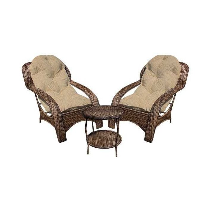 Conjunto de Poltronas Fibra Sintética Espreguiçadeira - 2 Poltronas + Mesa de Centro - Tecido Duna D
