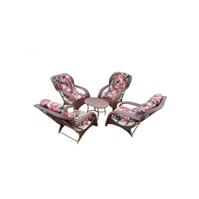 Conjunto de Poltronas Fibra Sintética Espreguiçadeira - 4 Poltronas + 1 Mesa Centro - Tecido Maui Pr
