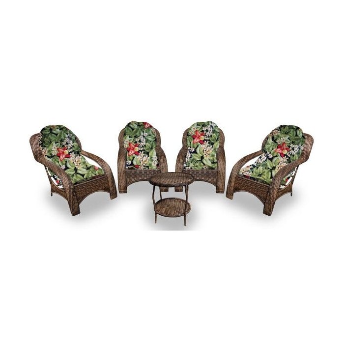 A estrutura de aço galvanizado envolto em fibra sintética garante a qualidade de nossos produtos. Nossas almofadas são revestidas com tecidos Acquablock, compostos por 72% algodão e 28% poliéster, com acabamento impermeável. Confira os tecidos disponíveis e todas as vantagens Acquablock aqui. Conjunto composto por: 4 poltronas - Altura do assento com almofada 46 cm Dimensões A93 x L79 x C97 cm 1 Mesa de centro redonda Dimensões A46 x D51 cm Por se tratar de confecção artesanal, as dimensões dos produtos podem sofrer variação.