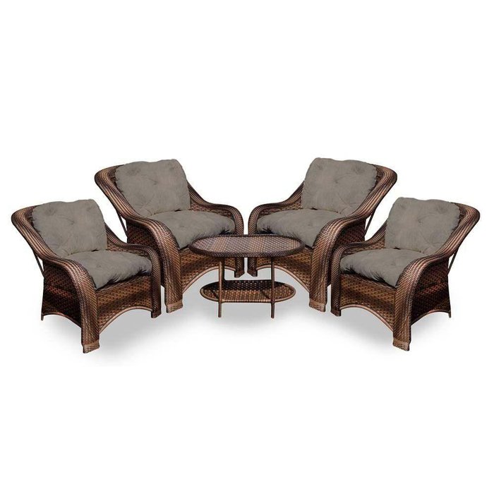 Conjunto de Poltronas Fibra Sintética Melo - 4 Poltronas + 1 Mesa Centro - Tecido Duna Fendi Marrom