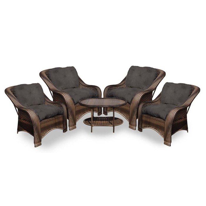 Conjunto de Poltronas Fibra Sintética Melo - 4 Poltronas + 1 Mesa Centro - Tecido Duna Marrom