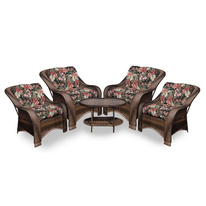 Conjunto de Poltronas Fibra Sintética Melo - 4 Poltronas + 1 Mesa Centro - Tecido Maui Preto