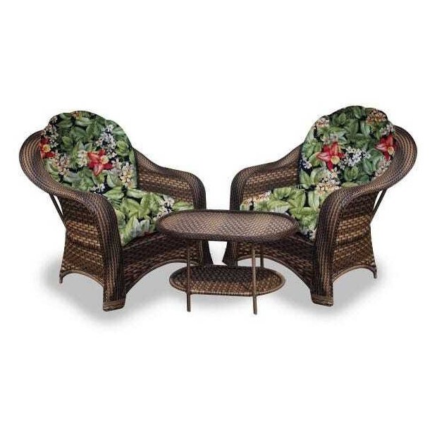 Conjunto de Poltronas Fibra Sintética Roma - 2 Poltronas e Mesa Centro - Tecido Saquarema Wengué/Floral Primavera
