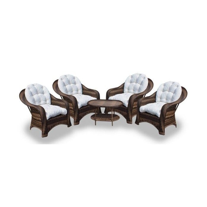 Conjunto de Poltronas Fibra Sintética Roma - 4 Poltronas + 1 Mesa Centro - Tecido Duna Cru