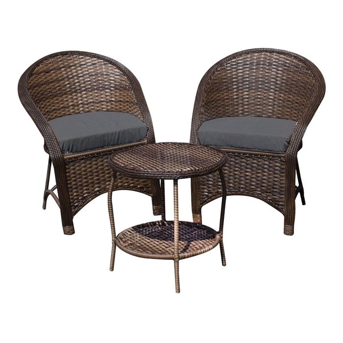 Conjunto de Poltronas Fibra Sintética Sônia - 2 Poltronas + 1 Mesa Centro - Tecido Lisato Grafite